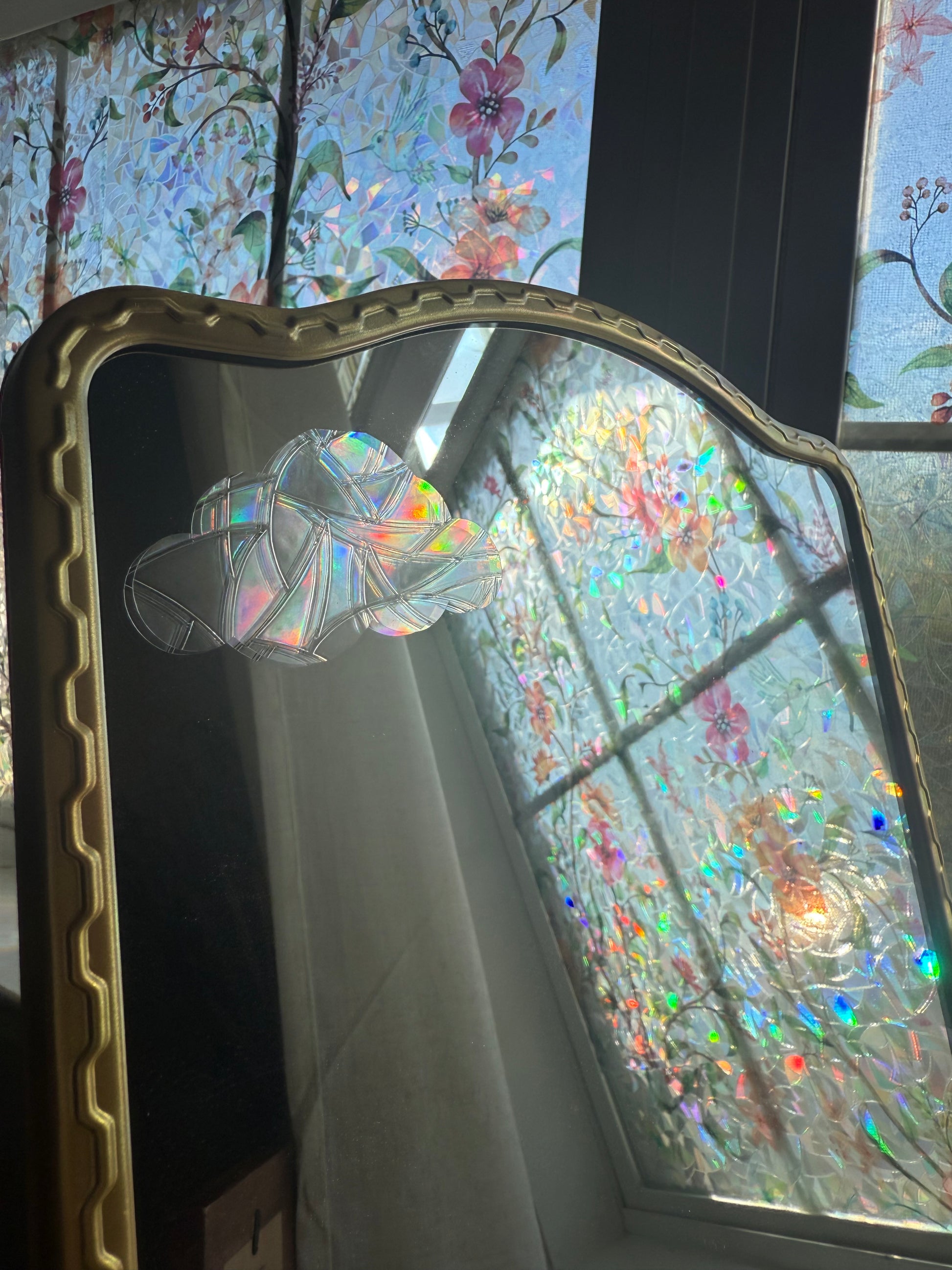 Suncatcher window cling that creates prismatic rainbows throughout your room. Removable and leaves no residue so you can use it as much as you'd like!