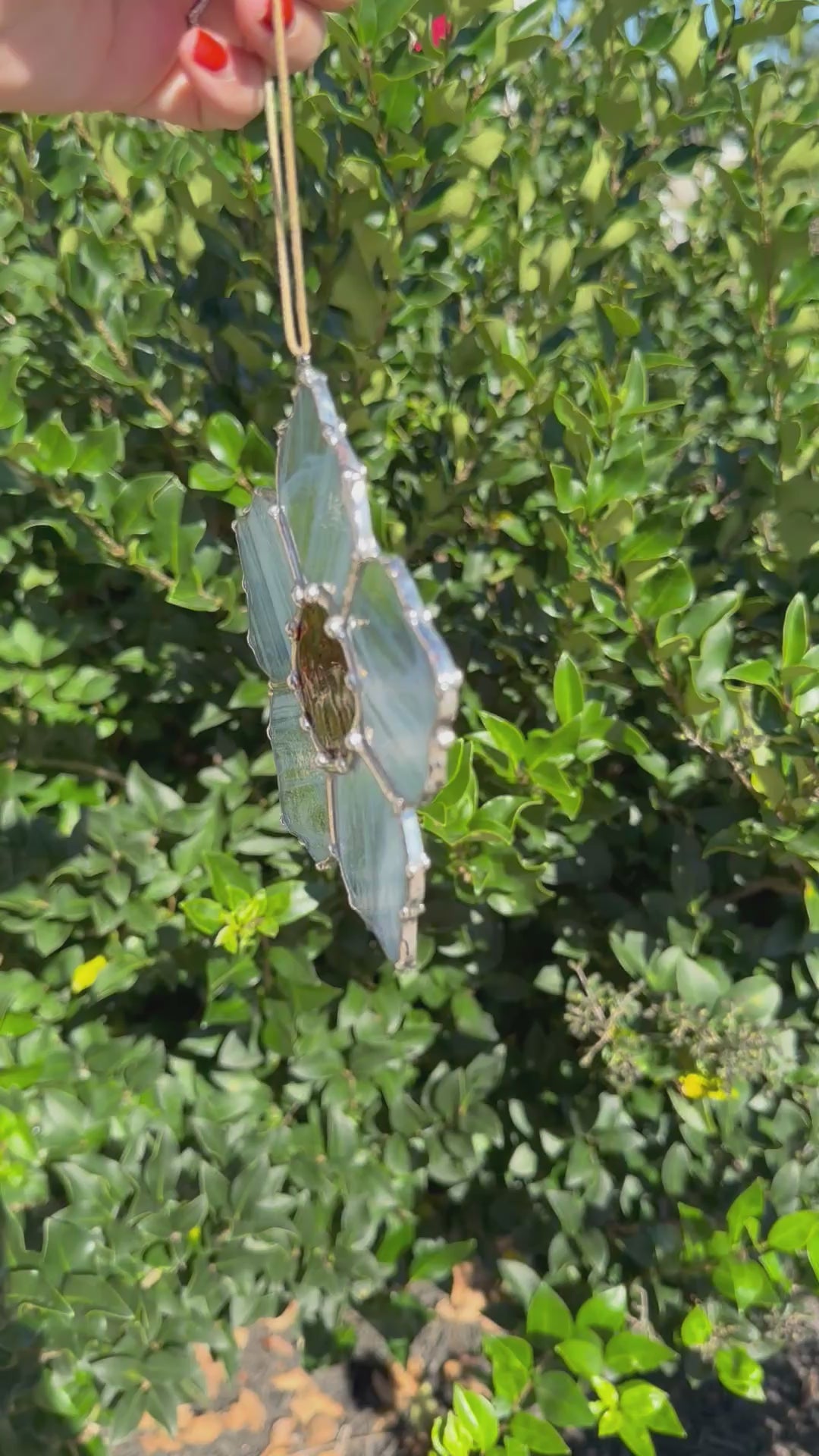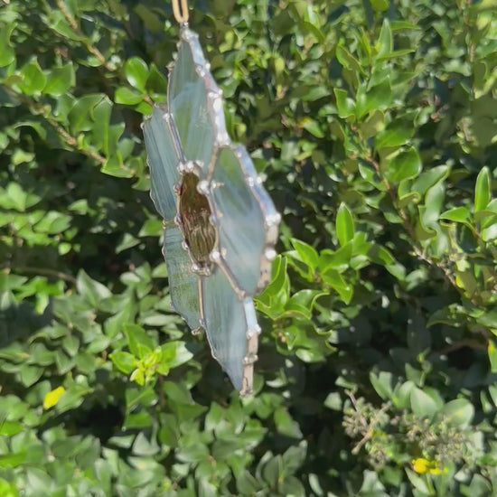 Each individual piece is made with hand cut glass, copper foil and held together with solder. Beautiful beaded solder added to add contrast. Panel measures approximately 5" x 5".