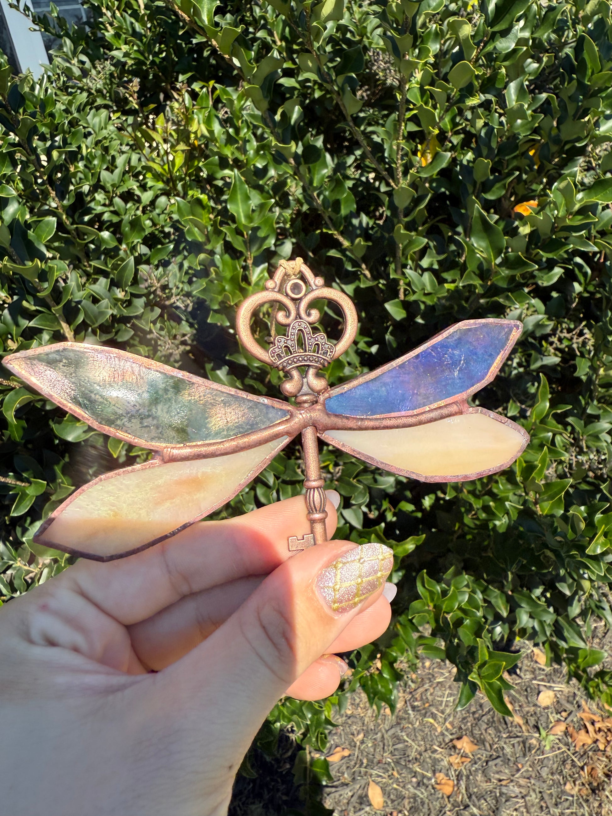 Dragonfly Skeleton Key Trinket - Stained Glass Pattern