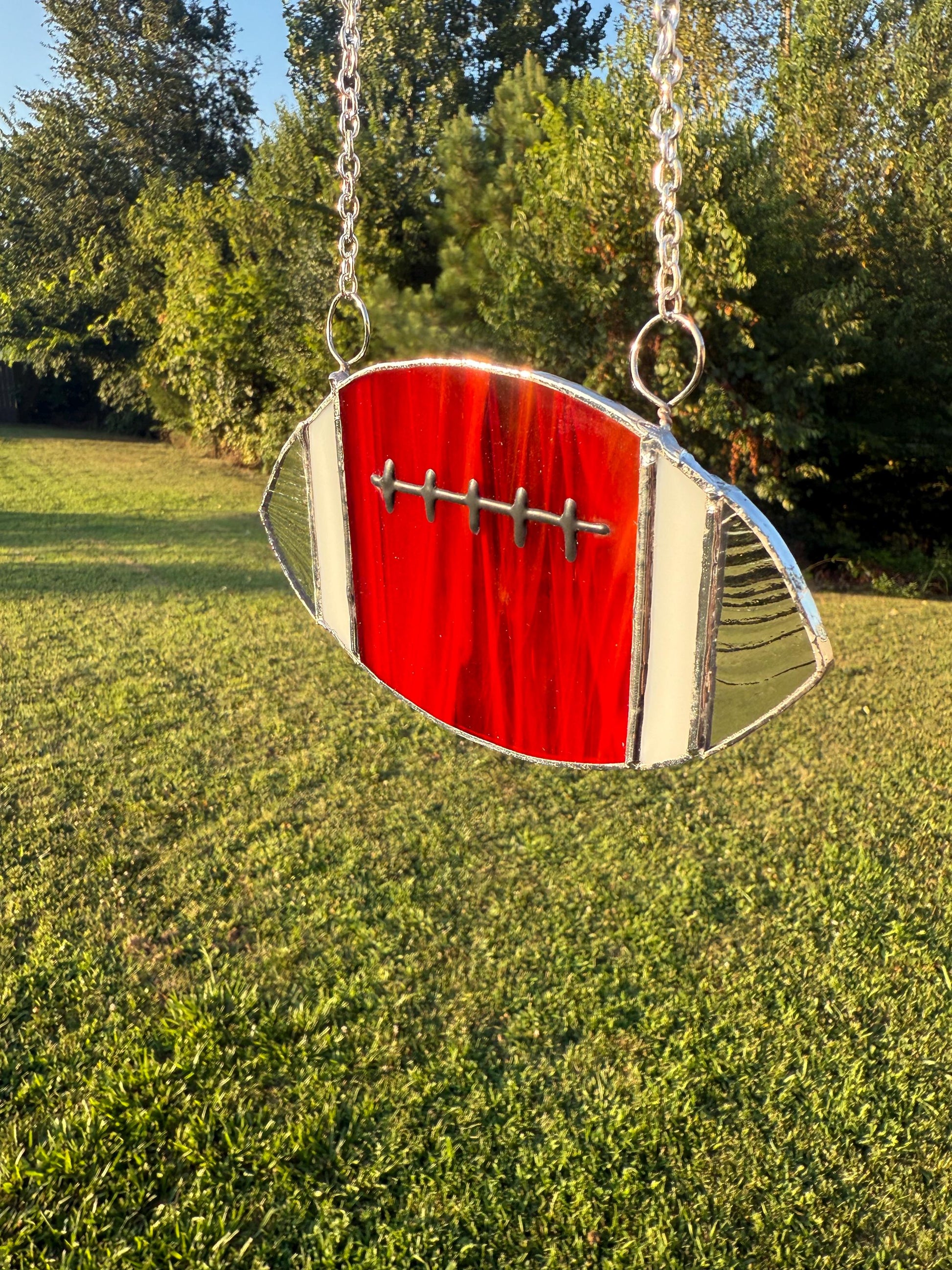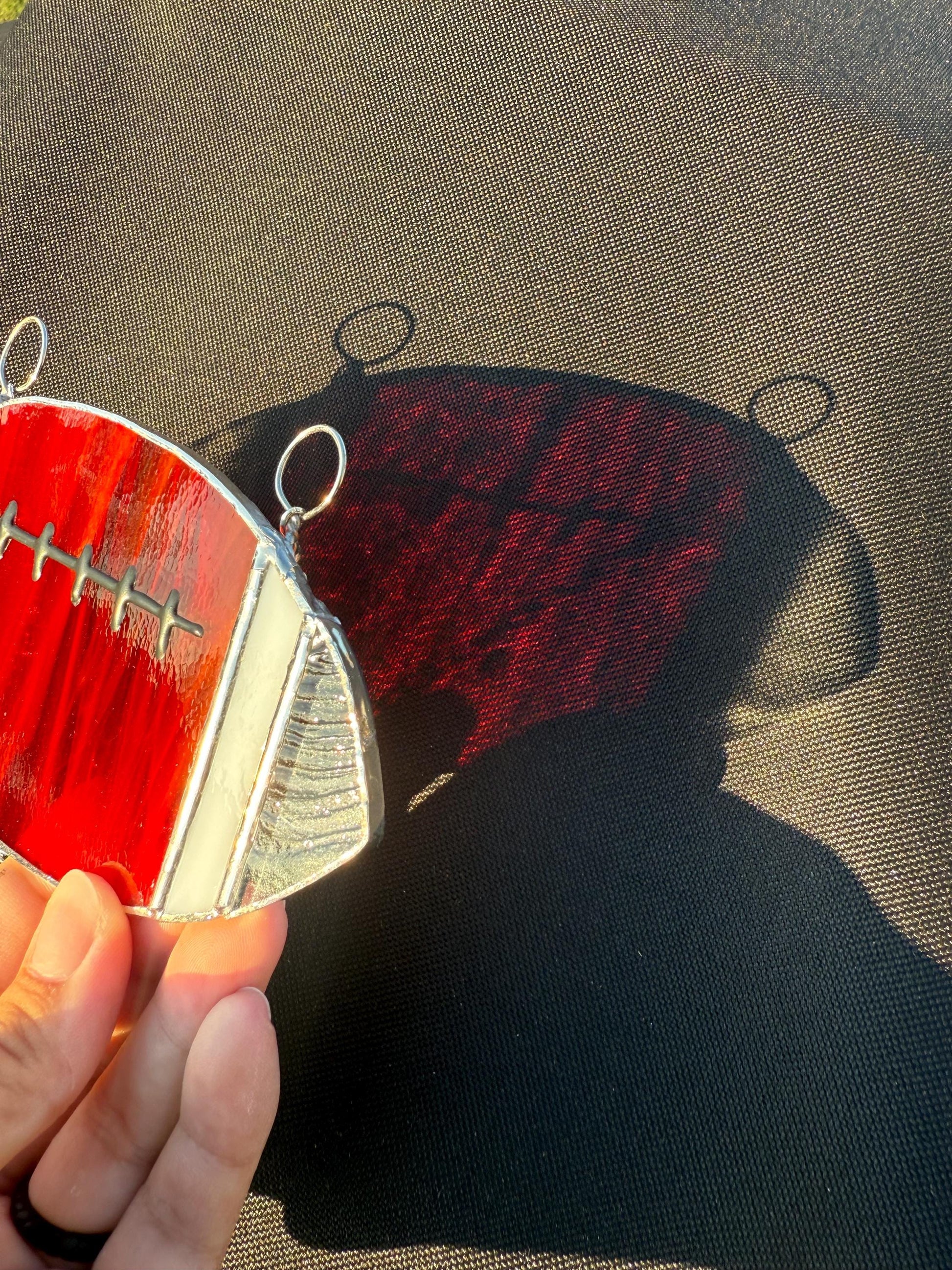 Each individual suncatcher is made with hand cut glass, copper foil and held together with solder. Panel measures approximately 3" x 5".