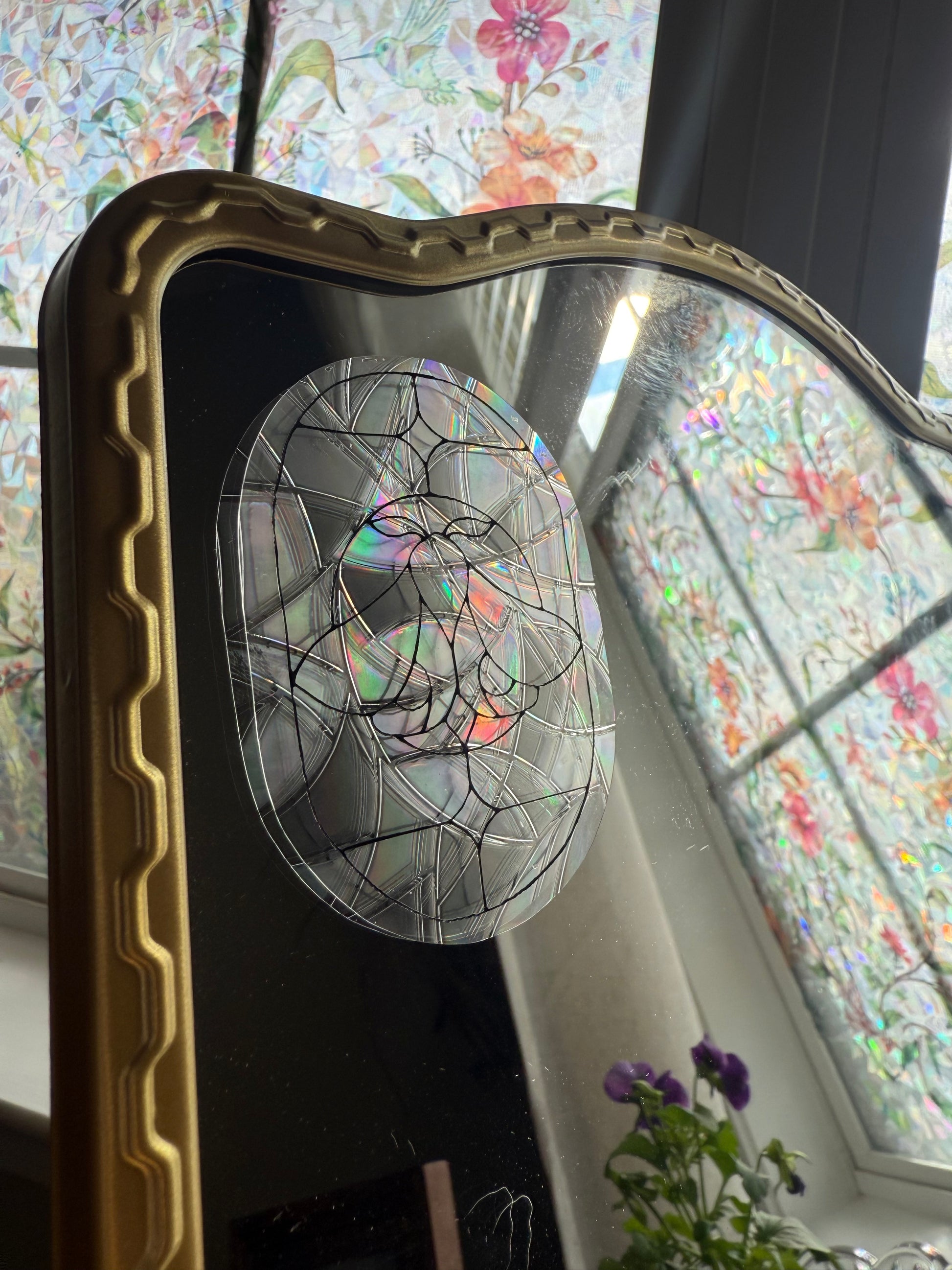 Suncatcher window cling that creates prismatic rainbows throughout your room. Removable and leaves no residue so you can use it as much as you'd like!