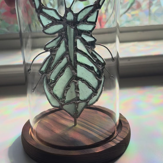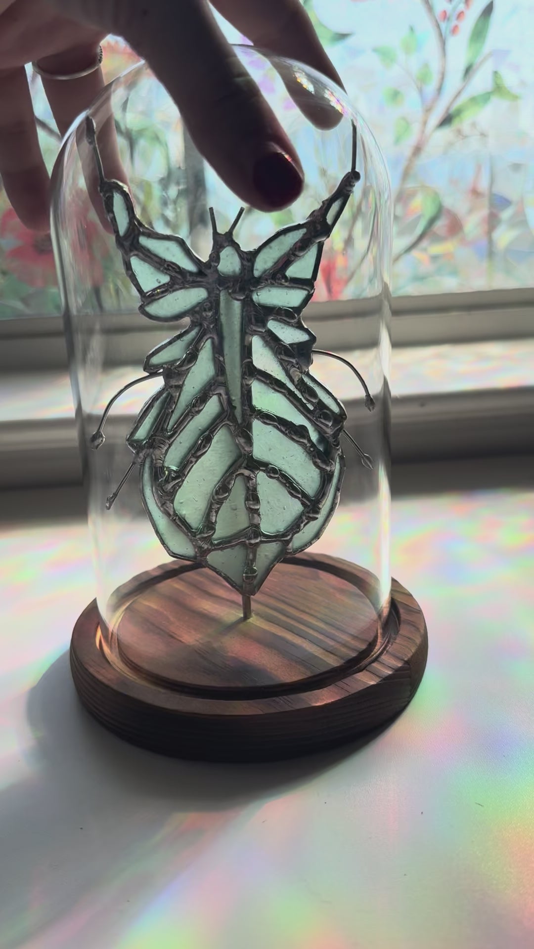 We are starting a bug collection! Robert is 1 of many collectible specimens to come <3 Each individual suncatcher is made with hand cut glass, copper foil and held together with solder. Wire/rod has been attached to hold bug in specimen dome. Panel measures approximately 5" x 4".