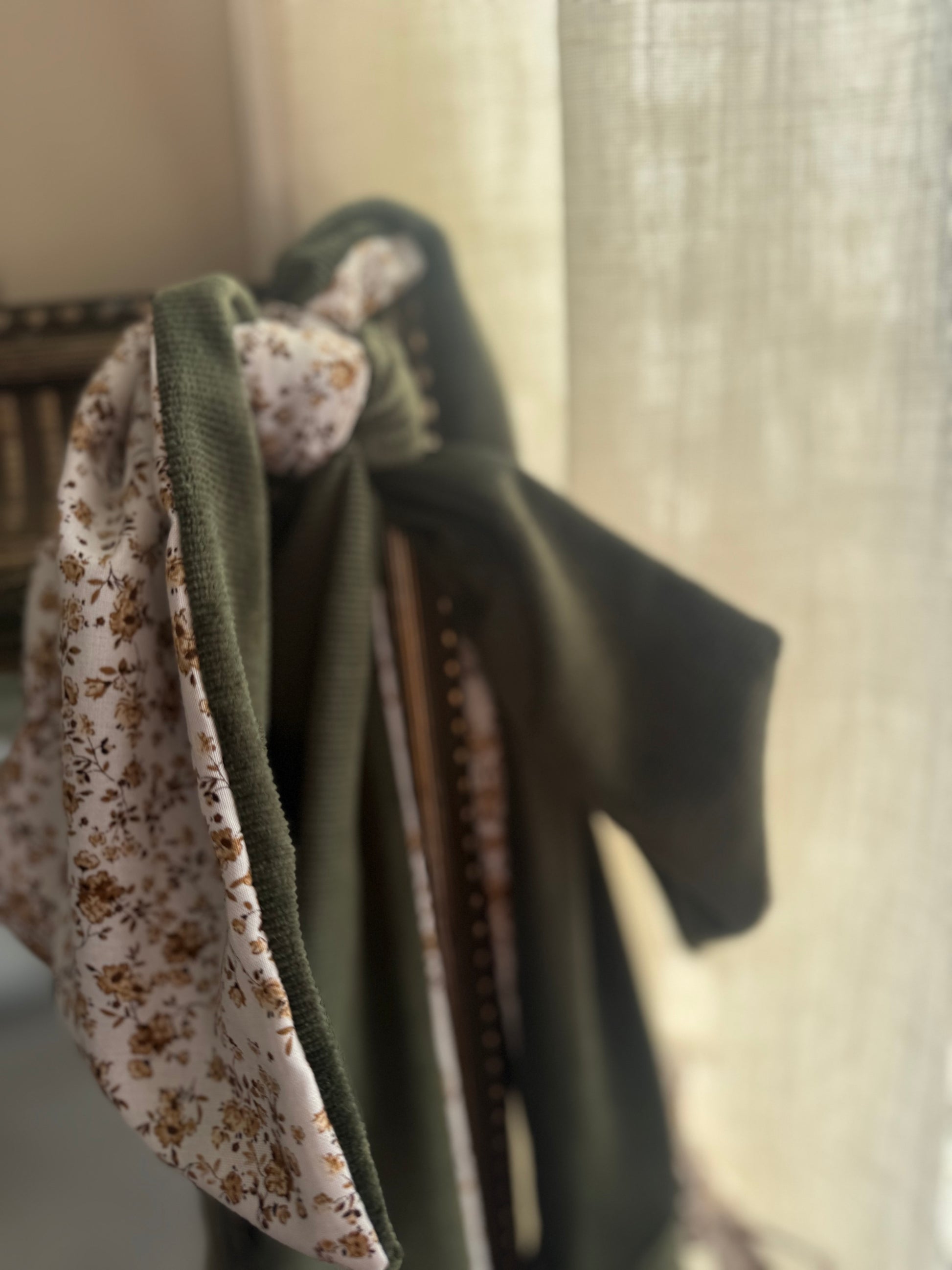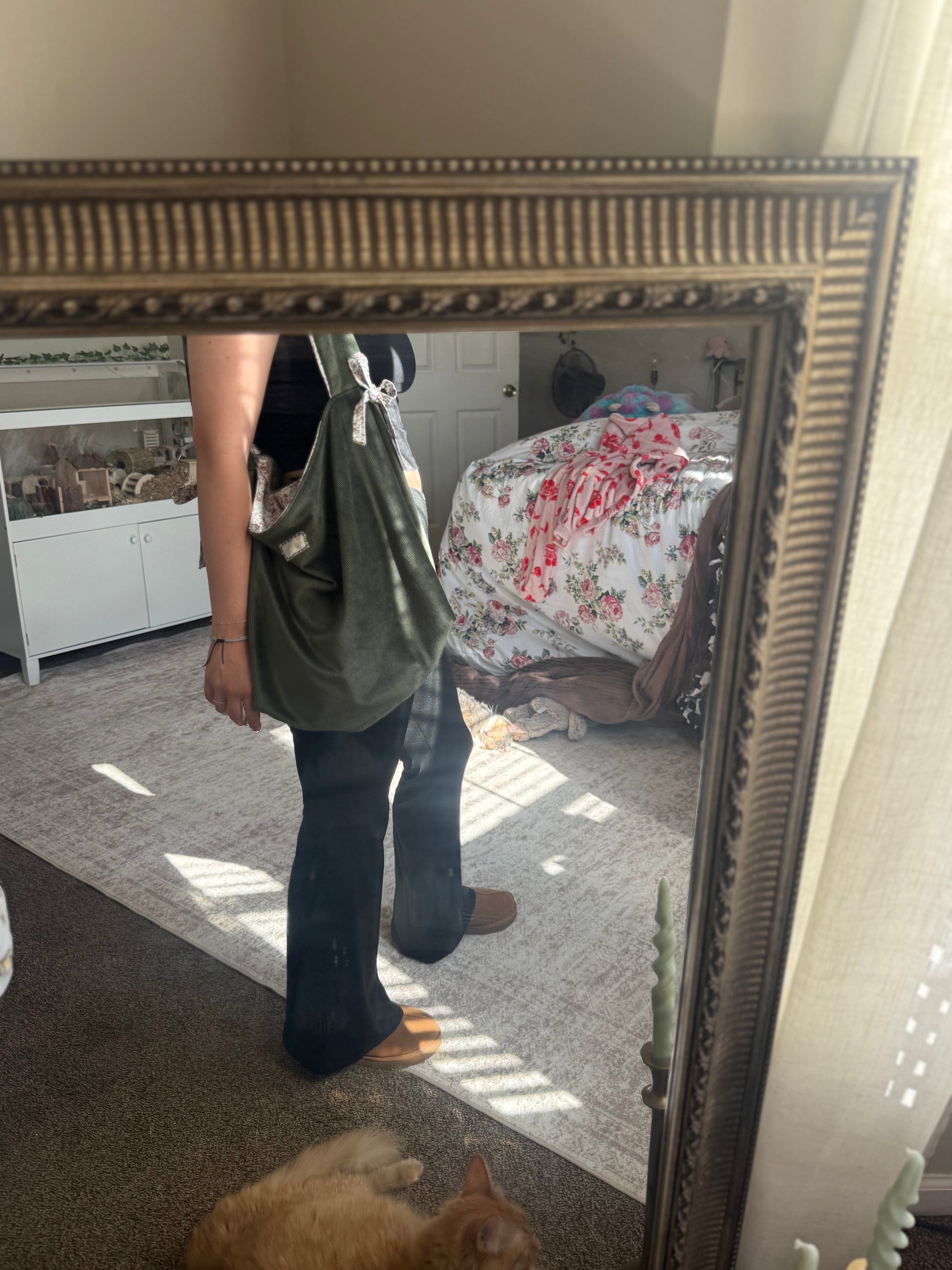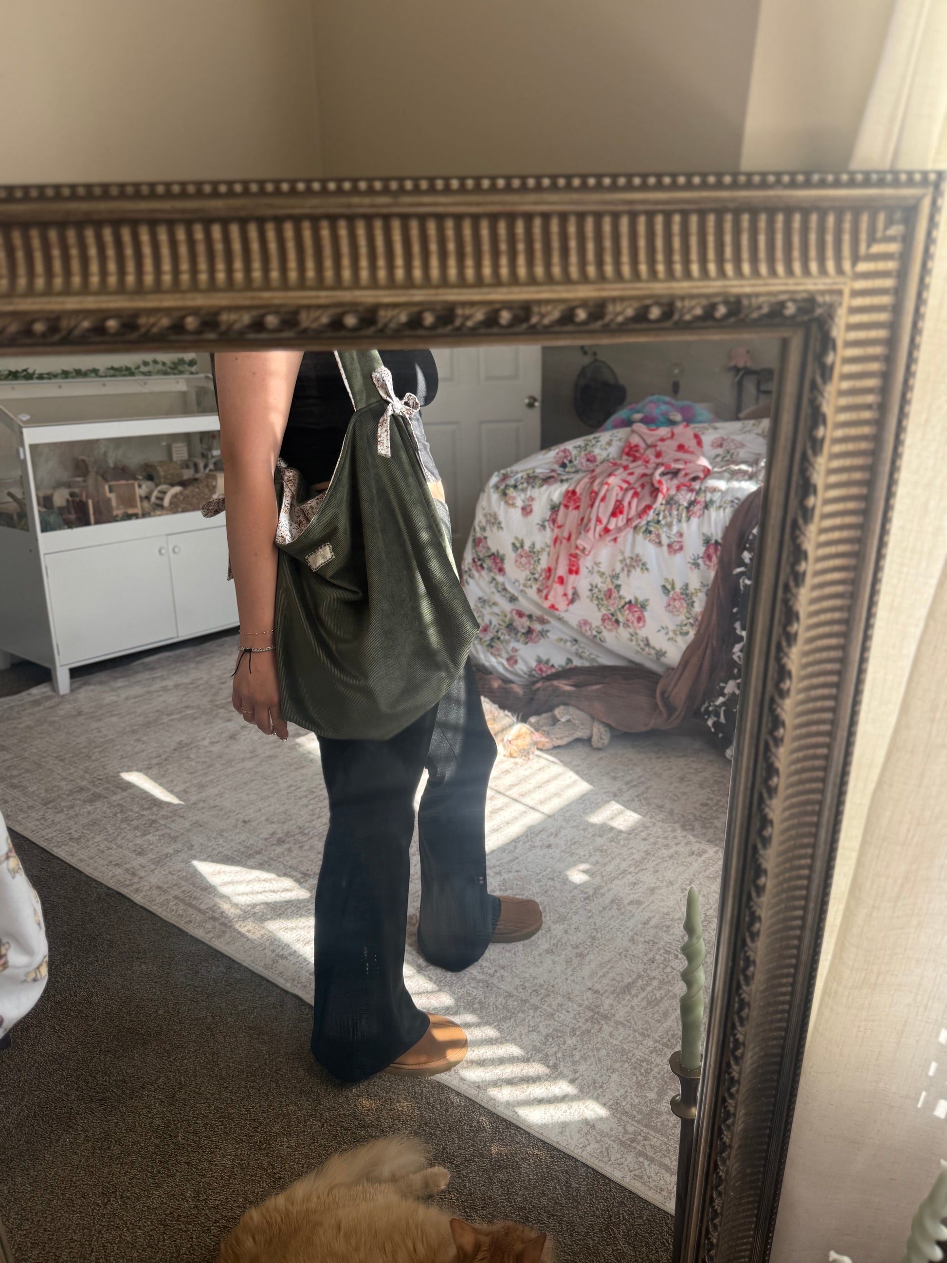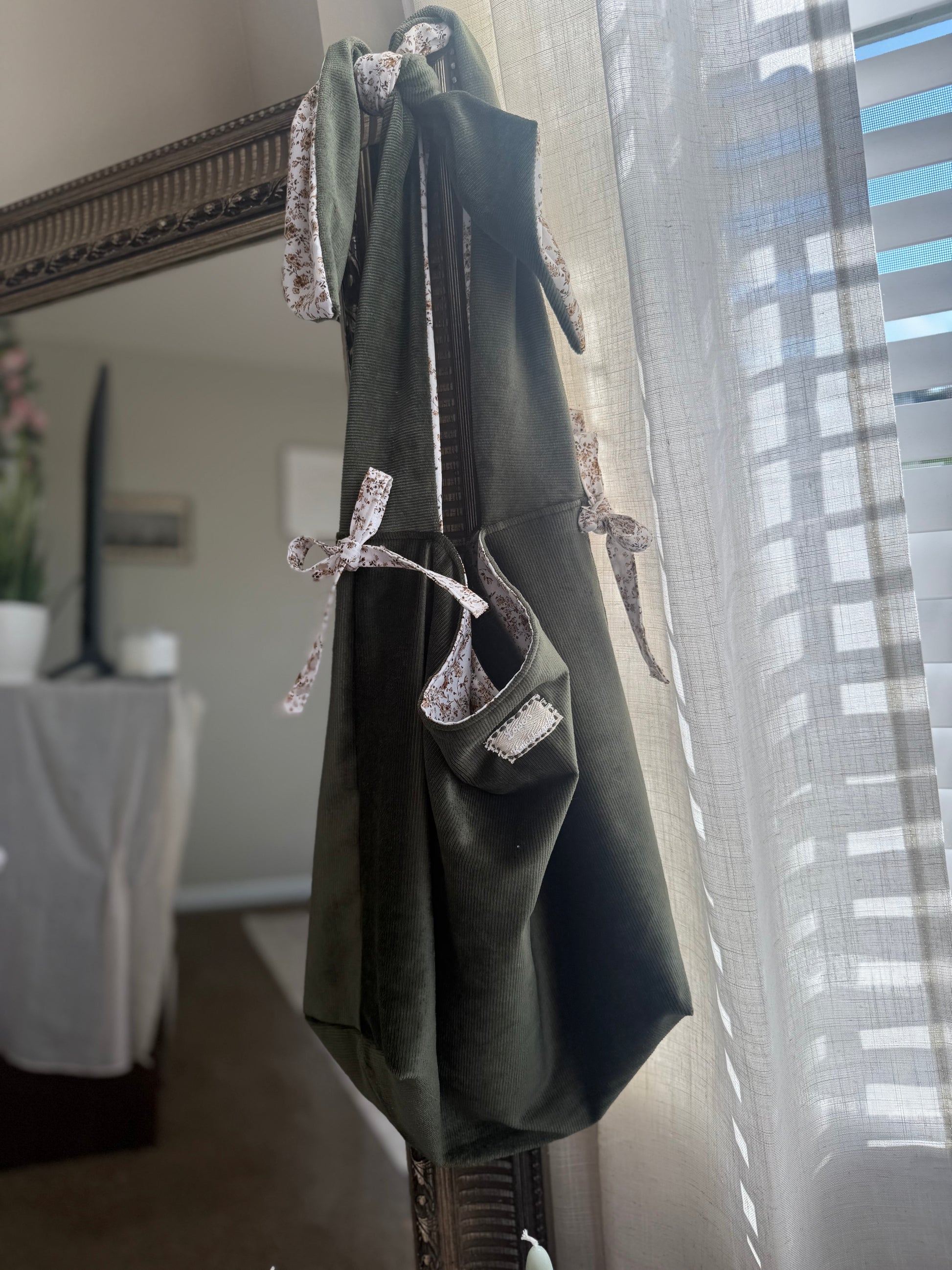 Sage Green Cotton Tote Bag with Bows | Large Shoulder Bag with Adjustable Strap