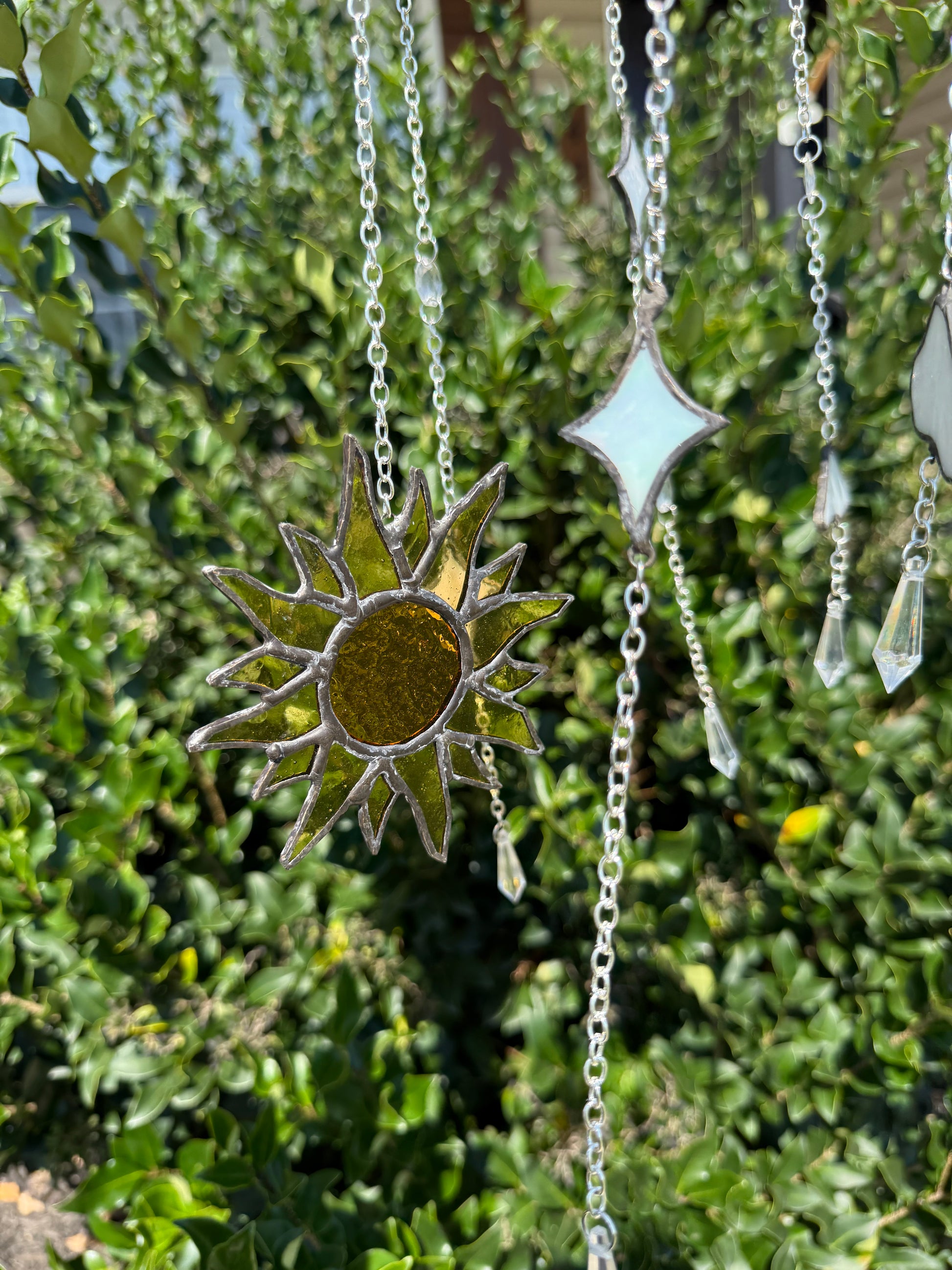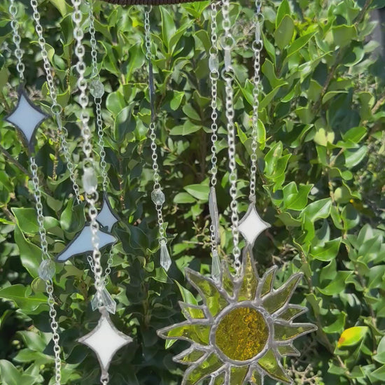 Sun and Stars Stained Glass Wind Chime